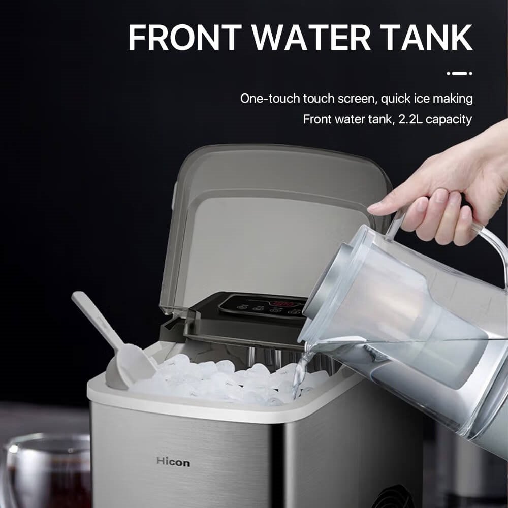 Fills a 48 oz mug of mine every couple of hours. The ice is great for crunching on while I'm having my drink. My Samsung refrigerator has the crappy ice maker that freezes over constantly. I don't even use it anymore because I like this so much better. The refillable water pitcher in my fridge is just the right amount of water to fill the unit up so that works out quite well. Easy to clean. Everyone complains that "you have to beak up the ice" or "the laser gets in the way when the ice stacks up." It's not a big deal move the ice around with the scoop. Enjoy!
